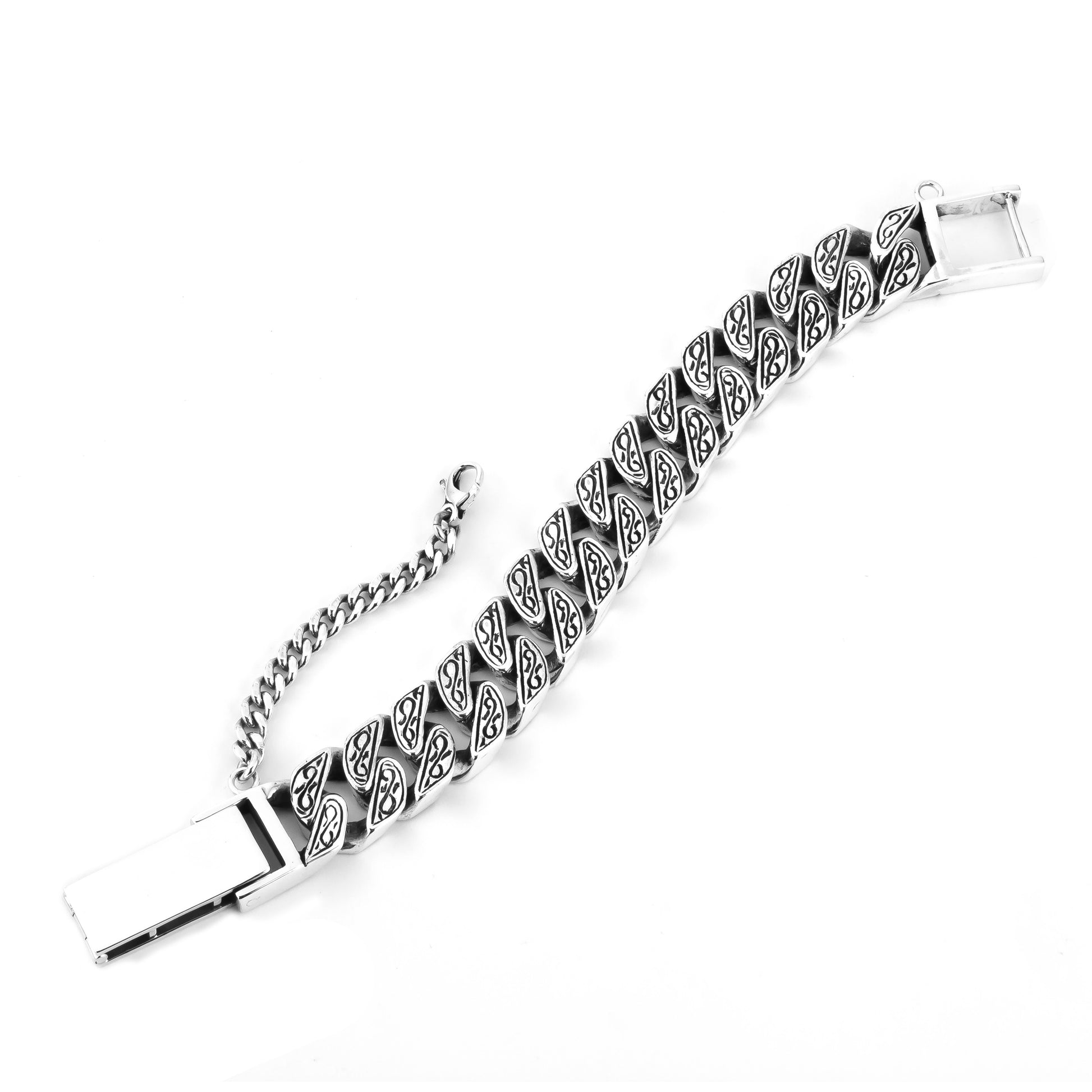 Hand engraved Lion Bracelet in solid 925 sterling silver.